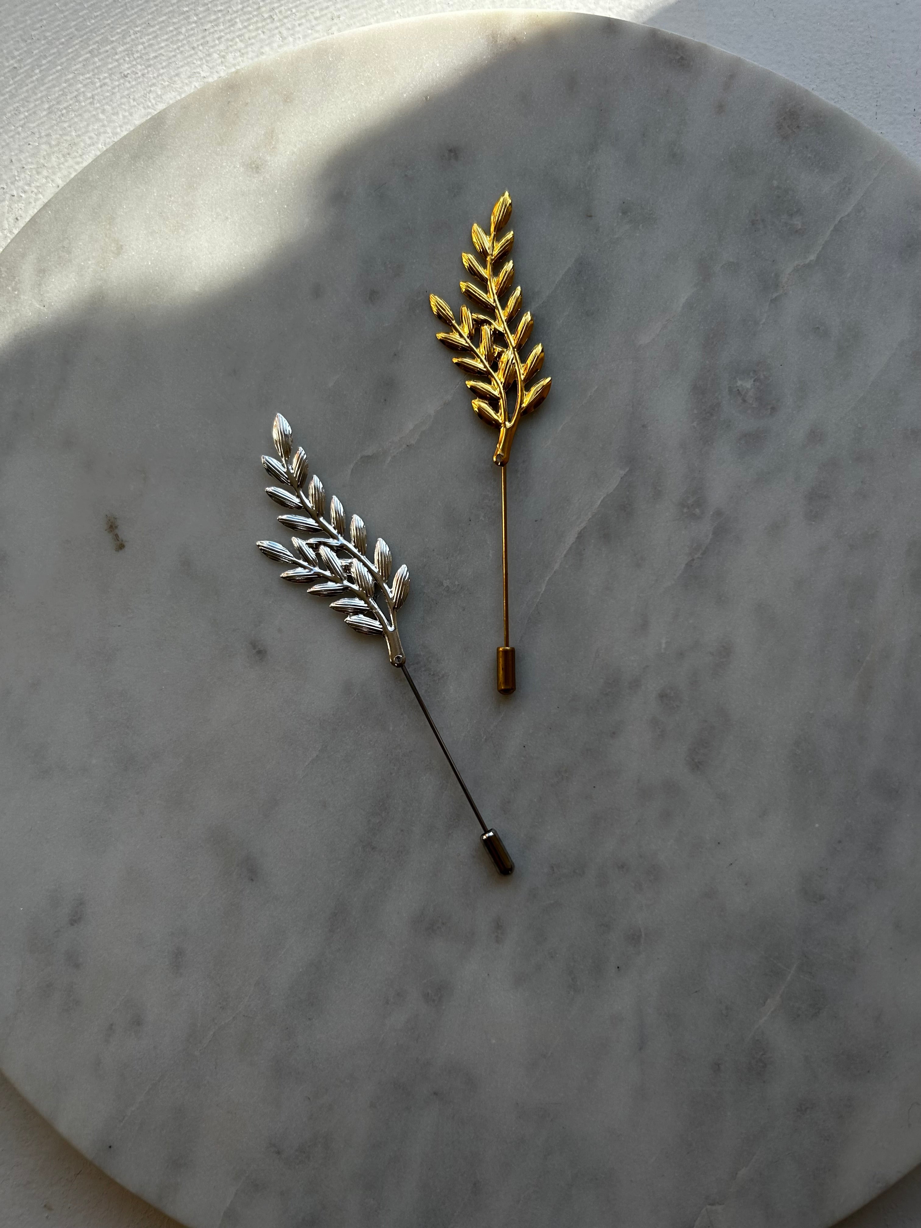Hermoso boutonniere de metal de hojitas con