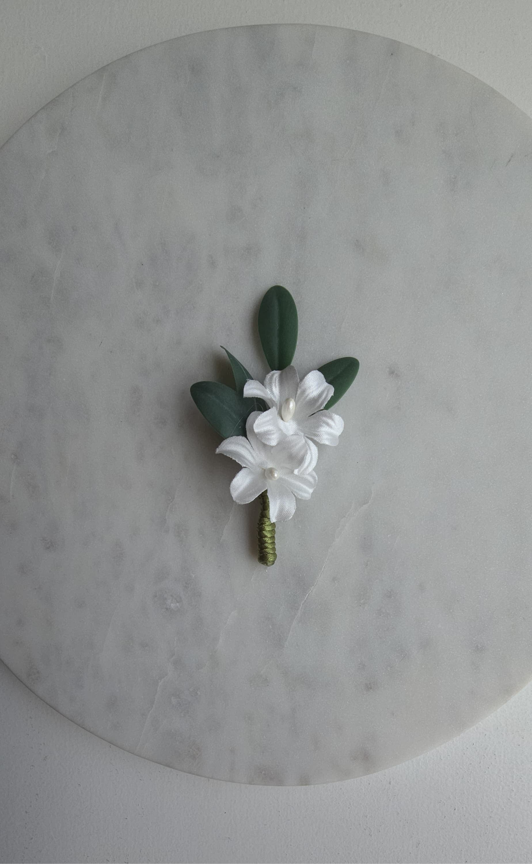 Este boutonniere de azahar es el accesorio ideal para novios o padrinos de boda que buscan un toque elegante, simbólico y artesanal. Hecho a mano con dos delicadas florecitas de azahar artificiales, representan pureza, amor y nuevos comienzos, convirtiéndolo en un detalle cargado de significado para ese gran día.