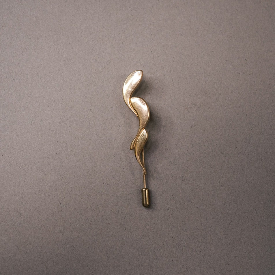 Boutonniere metálico en dorado en forma de delfines, distintivo elegante color dorado.