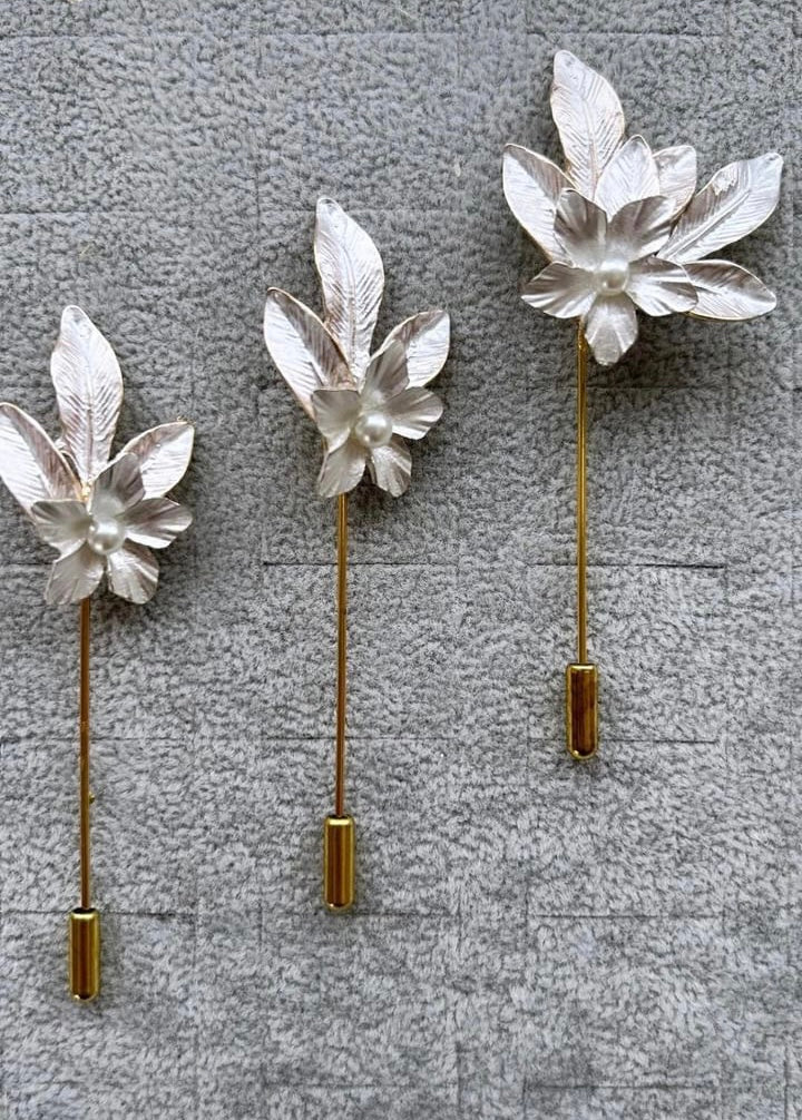 1 Boutonniere para Novio con doble 3L, y flor mini de metal con perla de centro.